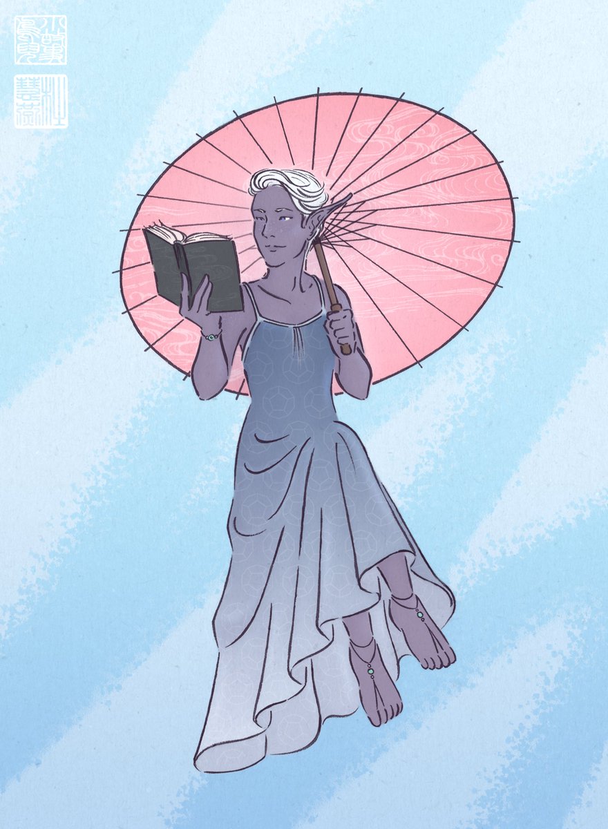 light reading 🌻 #CriticalRole #CriticalRoleFanart comm for @shadowsofthot from the v beginning of the year. shadowhand fashion and nicodranas summers CAN coexist ✋😌👌
