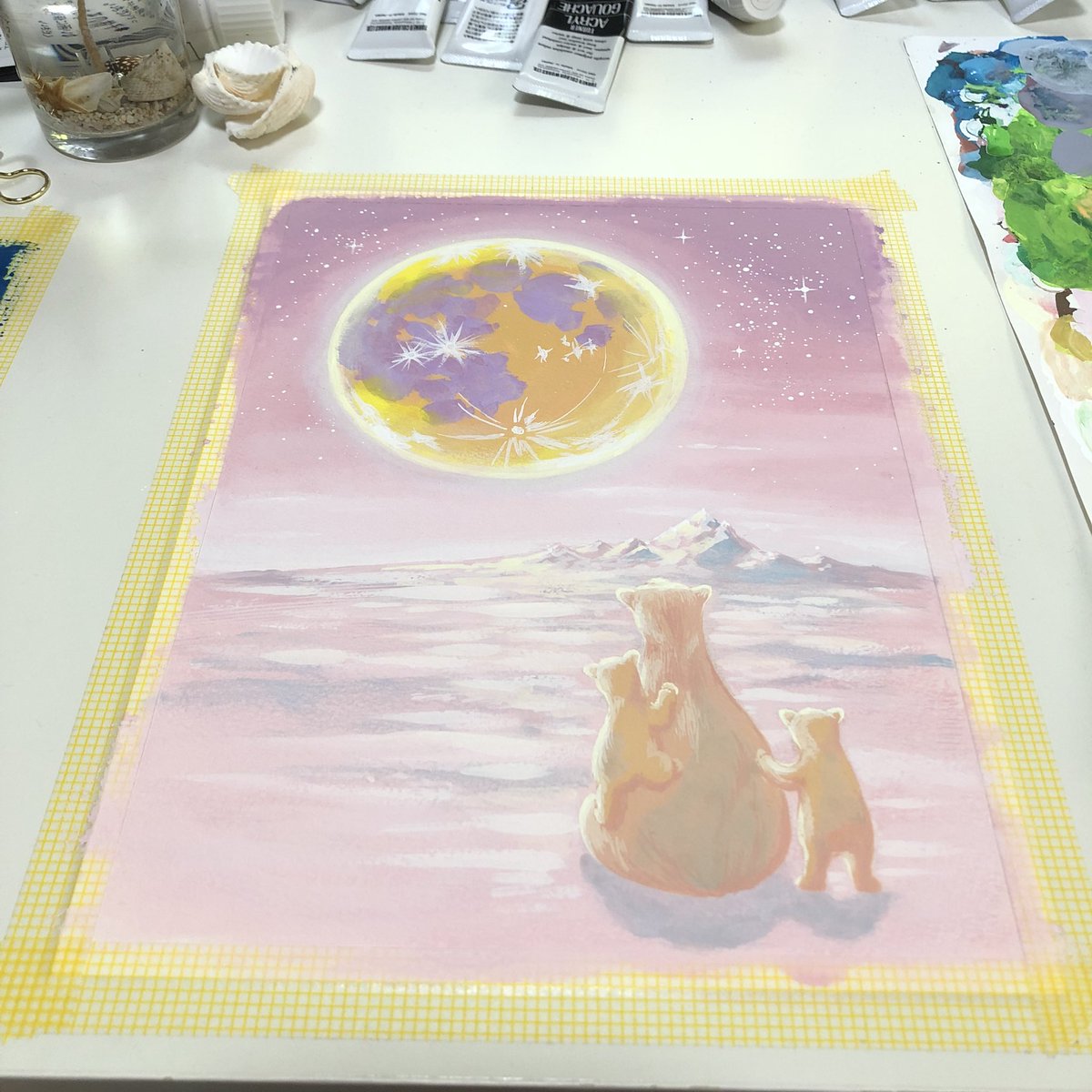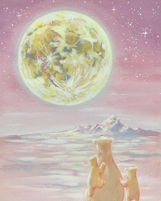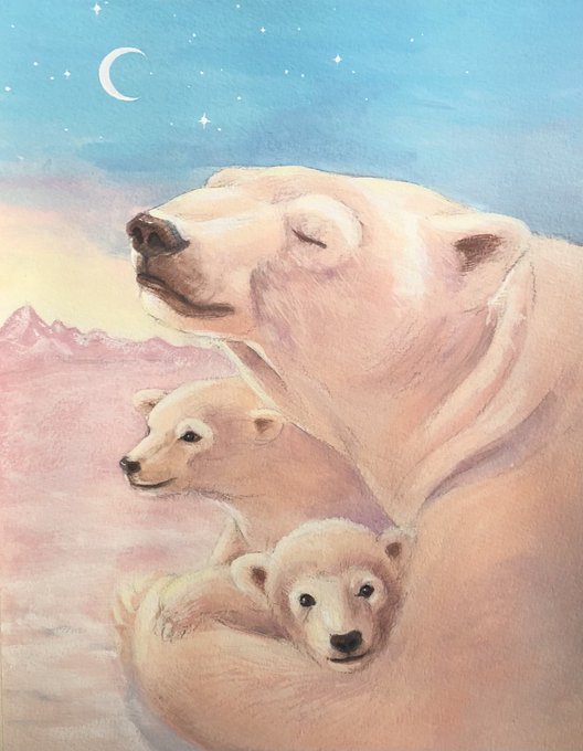 Polarbear #子育て #双子 #polarbear #moon #animalart #acylicpainting #絵描きさんとつながりたい
