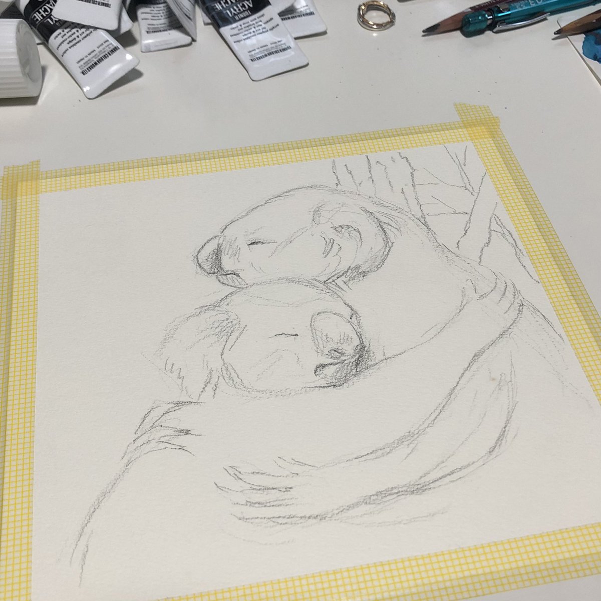 こあら描いてます #hug #koala #アクリル絵の具 #制作過程 #絵描きさんと繋がたい