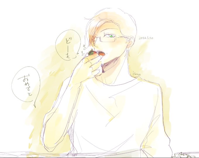 3 31 #入間銃兎誕生祭2020 ケーキ手掴みで食べてるところを書いたつもりですが イチゴしか見えない仕上がりにw まぁこれはこれでw 20/05/30 02:05