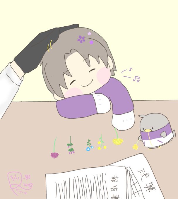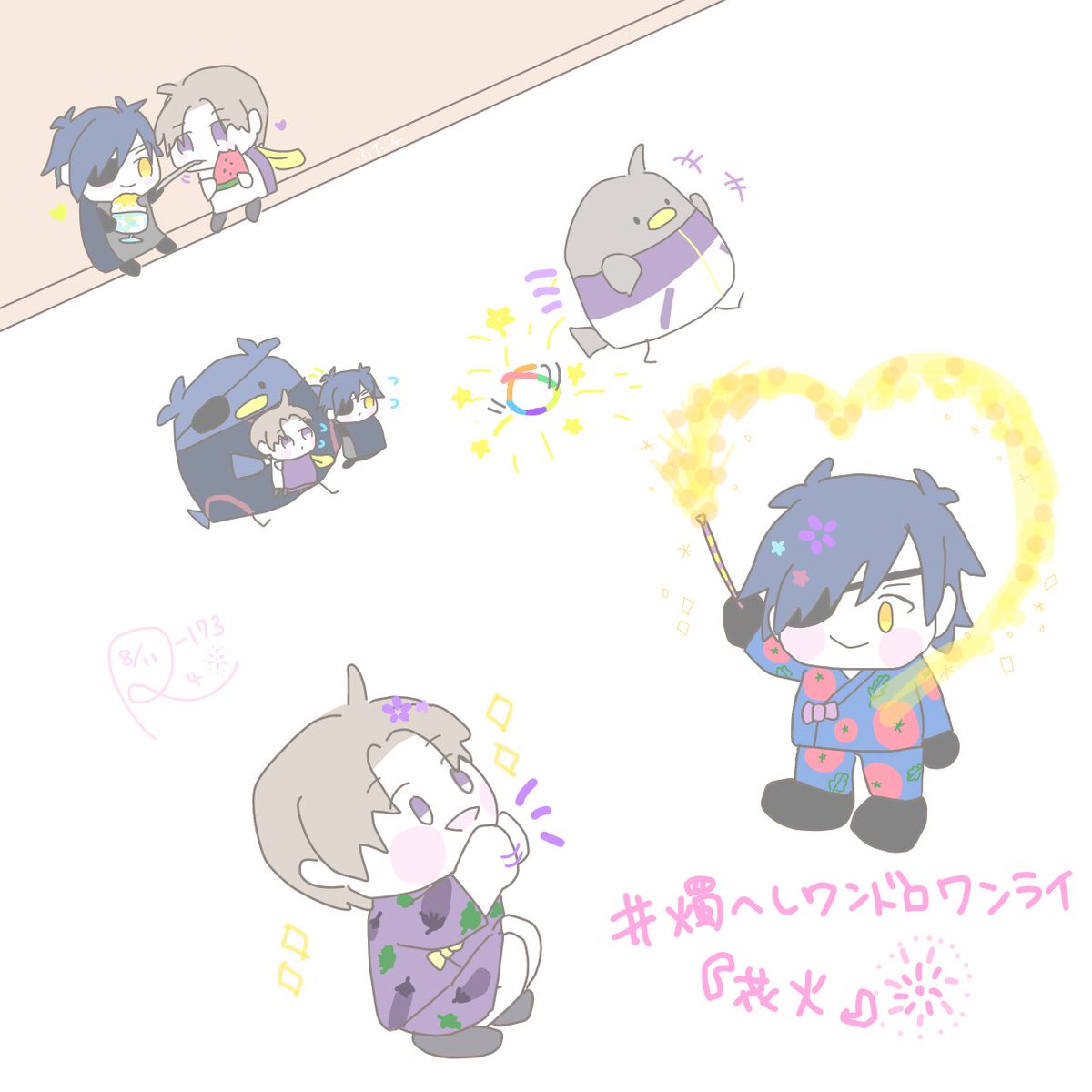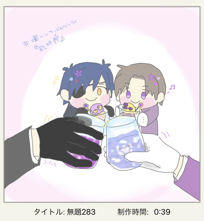 #燭へしワンドロワンライ 「乾杯」 遅刻してすみません! 燭へし酎ハイにグラスにコースターにマドラーに…素敵な1日でしたね☺️🥂 わんぱくたちにはお酒は早いから、アイスをあげようねぇ🌸🍨✨