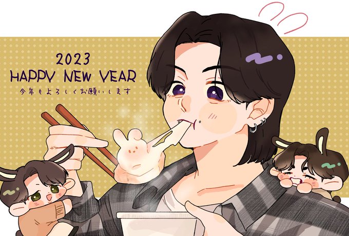 あけましておめでとうございます🎍🌅 今年もバンタンのFA,漫画をゆるりと描いていきたいです!!昨年より浮上は少し減るかもしれませんが2023年もよろしくお願いします🙏🌟