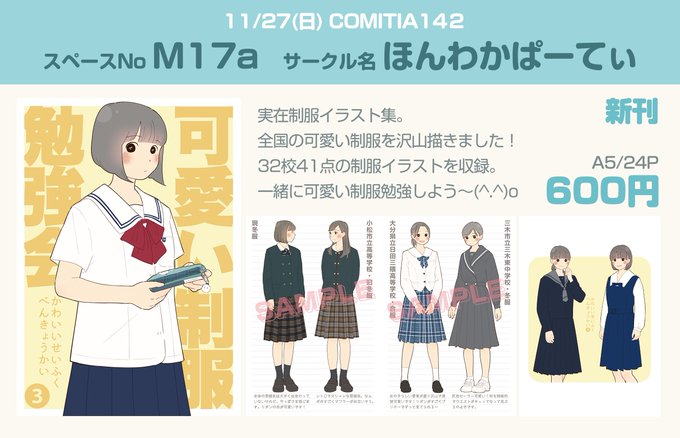 #COMITIA142 の新刊「可愛い制服勉強会3」はBOOTHにて通販中です! fua32.booth.pm/items/4330299 全国の可愛い制服を紹介しています。 32校41点の制服イラストを収録。A5/24Pです。 一緒に可愛い制服勉強しよう~📝✨