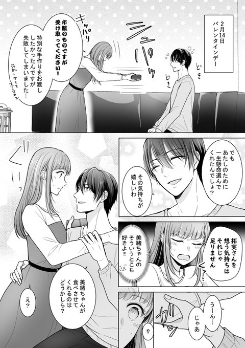 🍫バレンタイン漫画🍫(1/2) 美緒と拓実さん、二人にとっての初めてのバレンタイン💝 (以前上げた絵の漫画編) #捨てられ令嬢はオネェ社長に愛される #捨てオネ #バレンタインデー #マンガが読めるハッシュタグ #創作男女 twitter.com/fubukikaede02/…