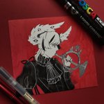 Day 1 of Drawtober using the @magsmunroe prompt list โnametagโ #magtober #magtober2022 #drawtober #inktober #drawloween #posca #molotowmarkers #artistreel #traditionalart #kawaii #demon #oc #poscamarker #sakuragellyroll #nametag #fuchstanzoc #alterego