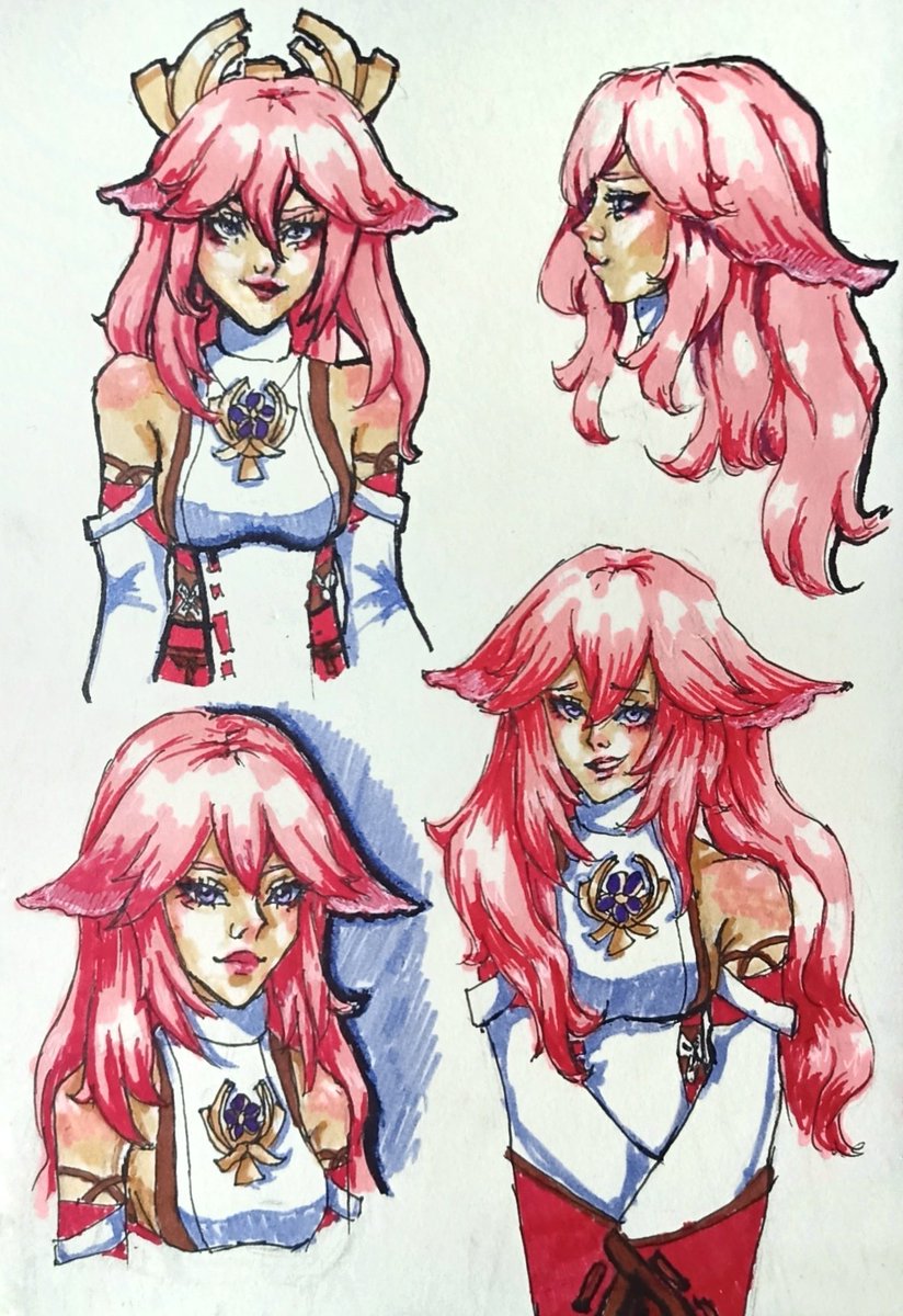 принесла сегодня немного скетчиков яэ🥺👉🏻👈🏻 #yaemiko #genshinimpactfanart #GenshinImpact