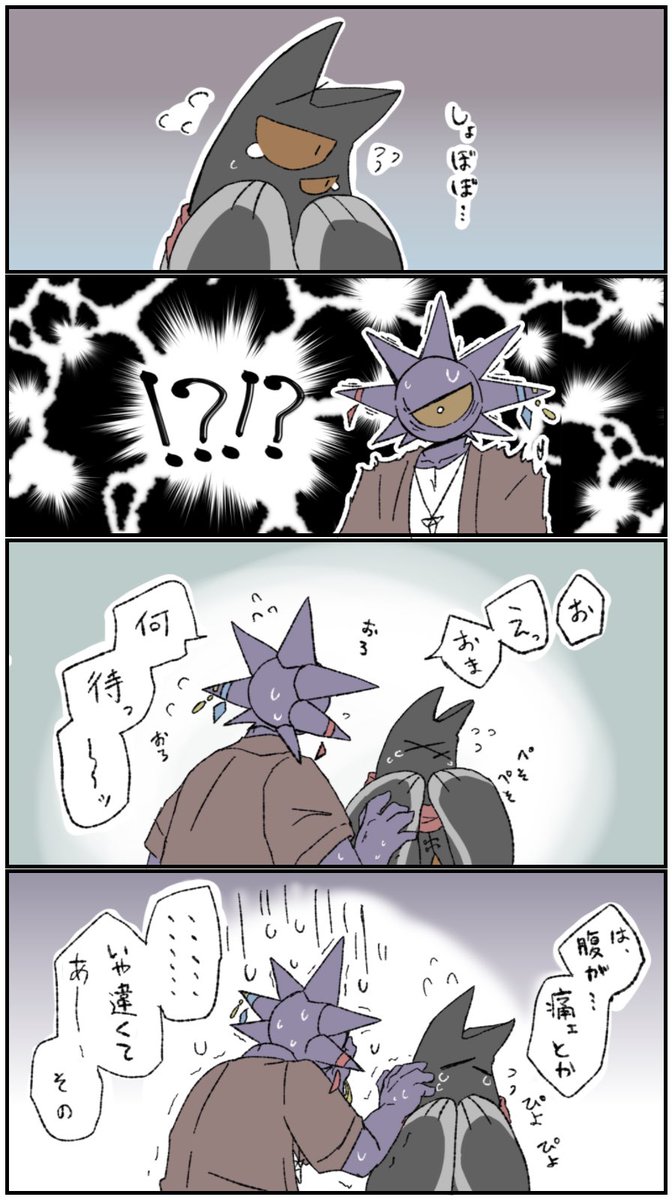 19 51 エイさんのべそべそ顔を初めて見て狼狽えるウニ見たくない?見たいと思ったので描きました 23/05/05 21:27