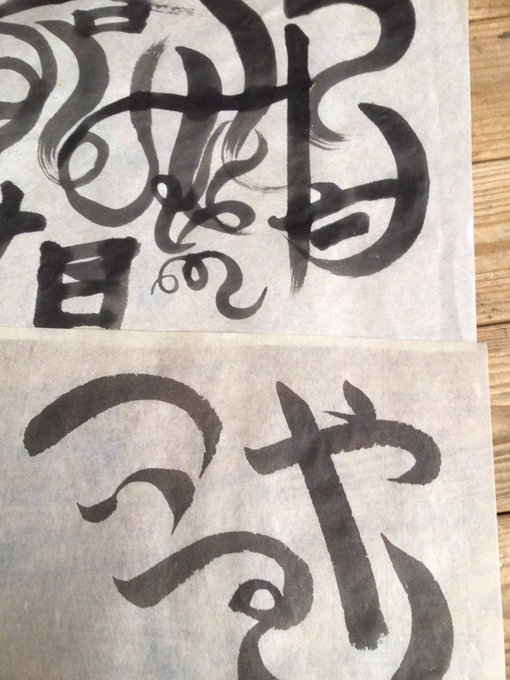 清朝末期の墨使っても、紙悪かったら全くいい色でない! (上の紙はまだマシな紙、下の紙はXXXの紙。わかりにくいけど) 結局、紙も墨も どちらかが悪いと片方良くても意味ないな〜 これは、水彩画でも同じですね〜 #紙 #墨 #水彩画