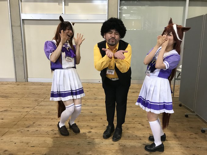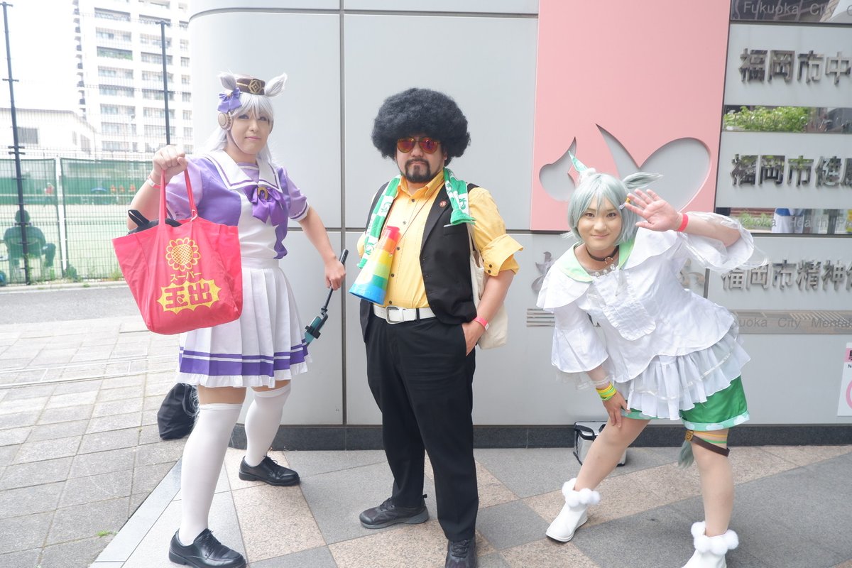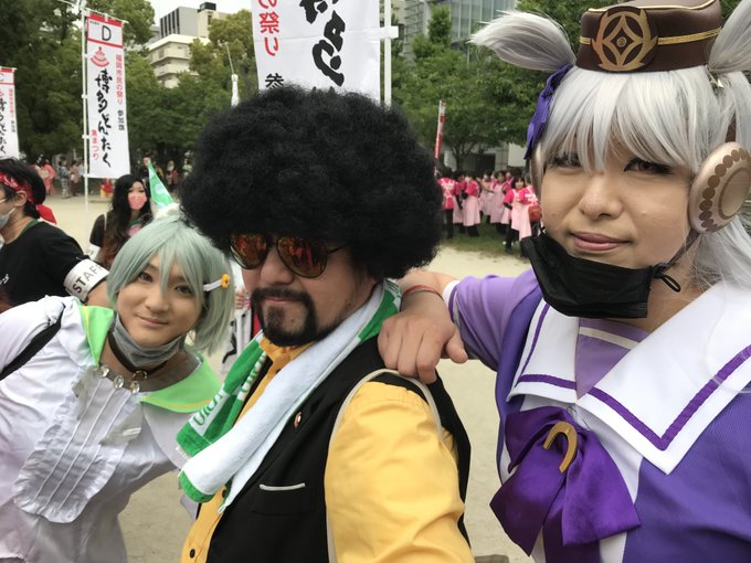 昨日の愉快なトレセン学園 📸田中さん@sonjin4545 ゴルシ:ODAちゃん@oda_09 セイちゃん:SARUSAくん@the_animism 鈴木トレーナー:ワイ #博多どんたくコスプレパレード2023
