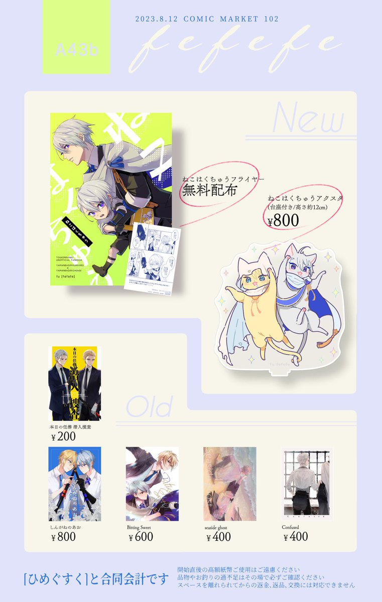 8/20 スパコミ関西 超閃華の刻2023夏 金瑠璃7 5号館 あ18ab 「ひめぐすくfefefe」 新刊「ねこはくちゅう」A5/22P/400円 政府所属のちびっこはくちゅうが本丸に!バグの発生に巻き込まれててんやわんやなラブコメです。ねこ型伯仲も出てます。 【pixiv】pixiv.net/artworks/11097… 【通販】虎の穴申請中