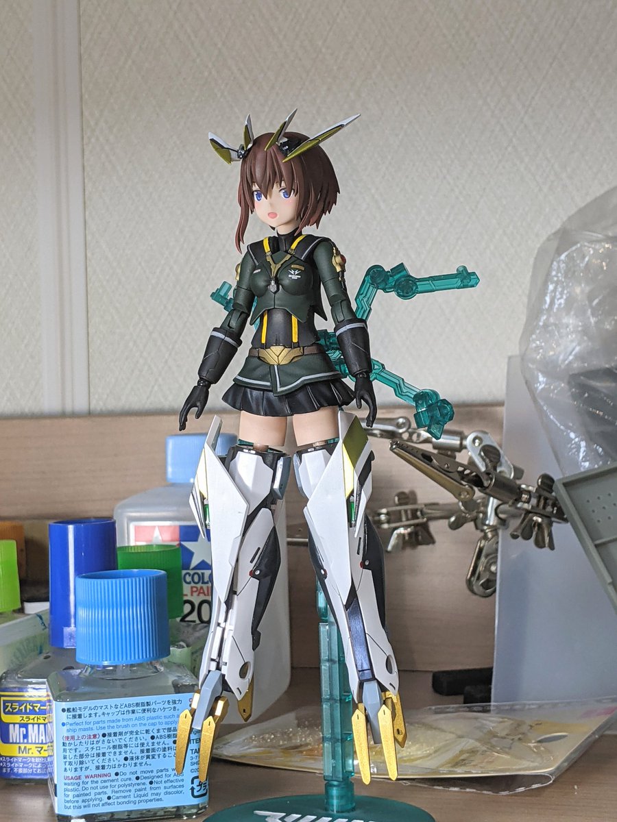 昨日仕事で遅かったから朝から30分だけプラモ 胸にデカール貼って、パイロットスーツ感を出す #メガミデバイス