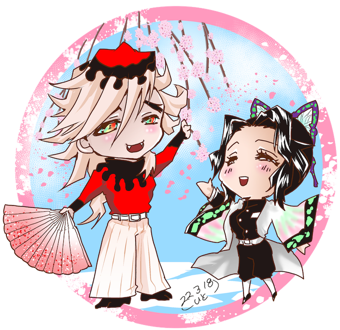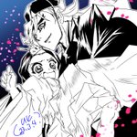 #童しの版深夜の真剣お絵描き60分一本勝負 #童しの お題「朧月夜」 大遅刻ごめんなさい 黄泉還り転生設定 上弦の鬼を人間に戻す実験体のどまとしのぶちゃん 転生前の記憶があるのでなかなか距離を詰められない感じで
