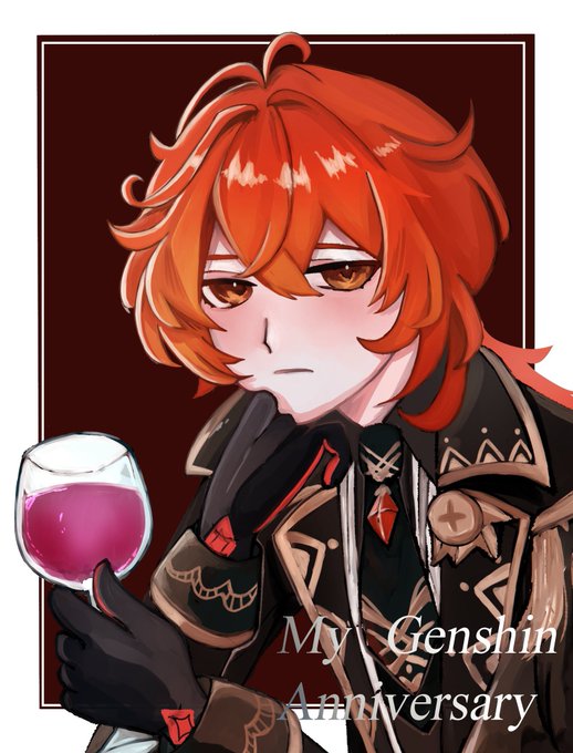 1 9 原神始めて1周年記念!! 辞めて復帰の繰り返しだったけど... 1番行動を共にしたであろうディルックを描きました!! #原神 22/03/06 20:00