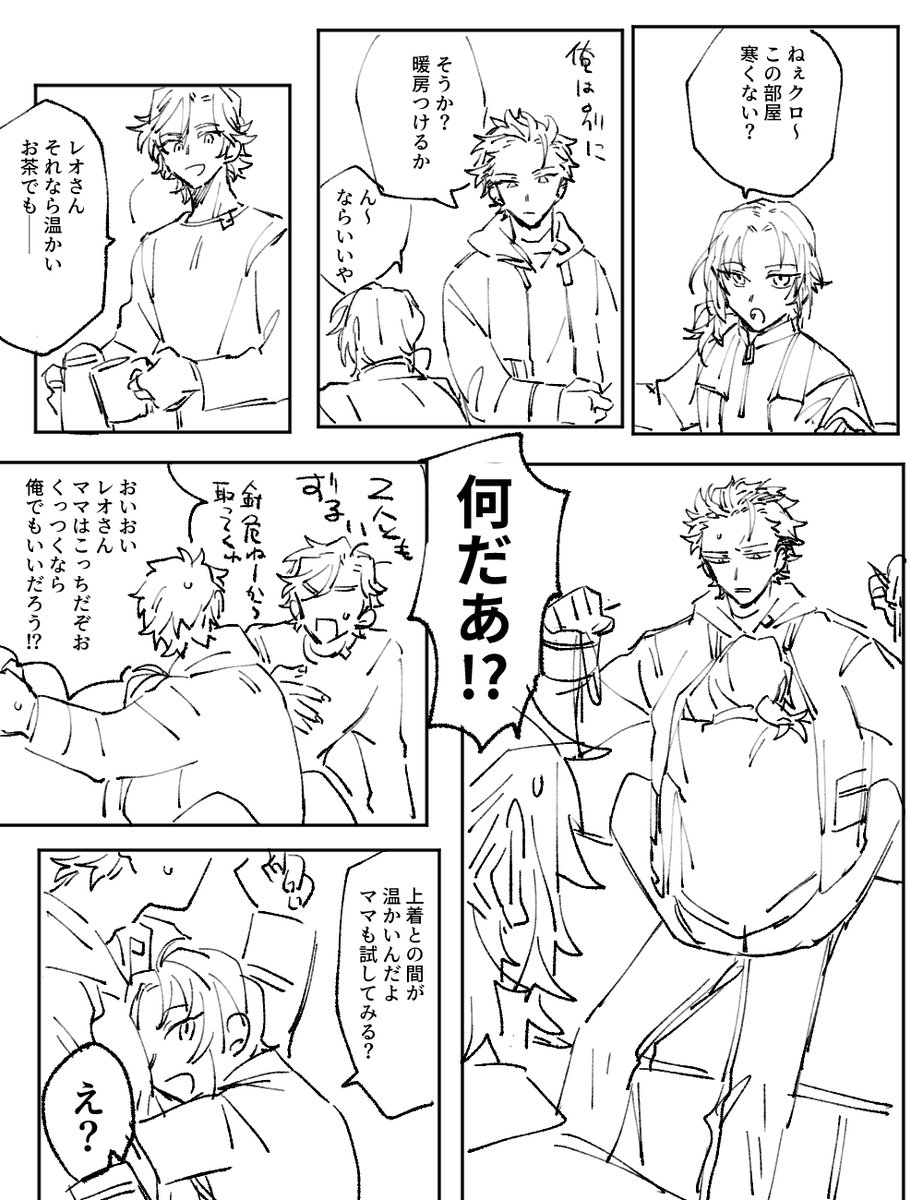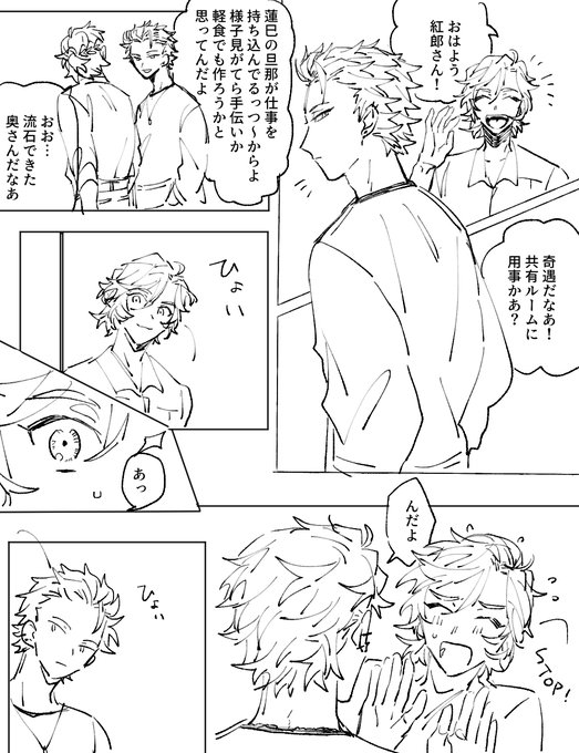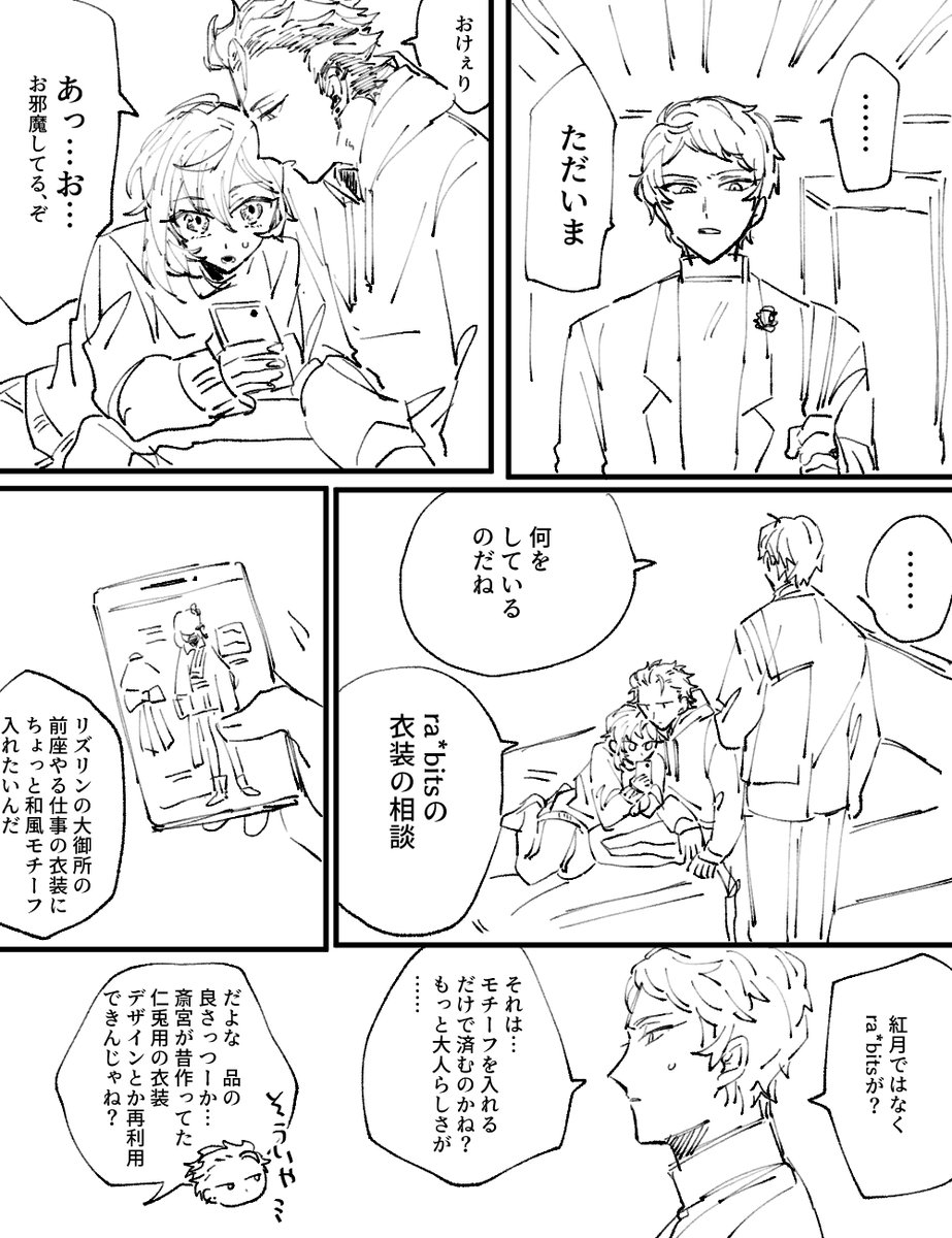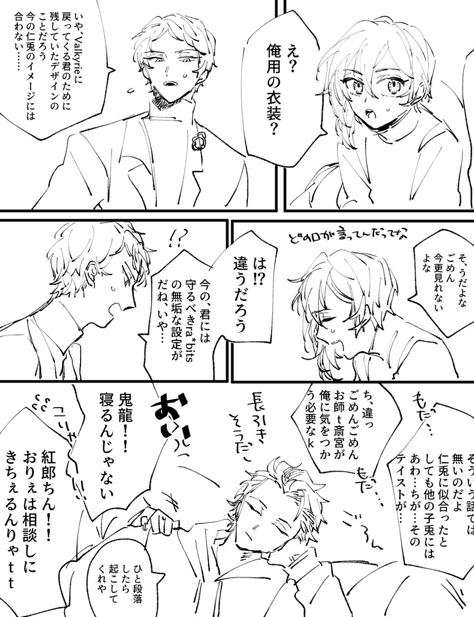 #odaibako_fuji4ta10 odaibako.net/detail/request… お題ありがとうございました。このあと部屋に帰ってきた瀬名さんか斎宮さんか真緒に「何やってんだ(何やってんだ)」って怒られるまでがセット。斑紅+レオです。