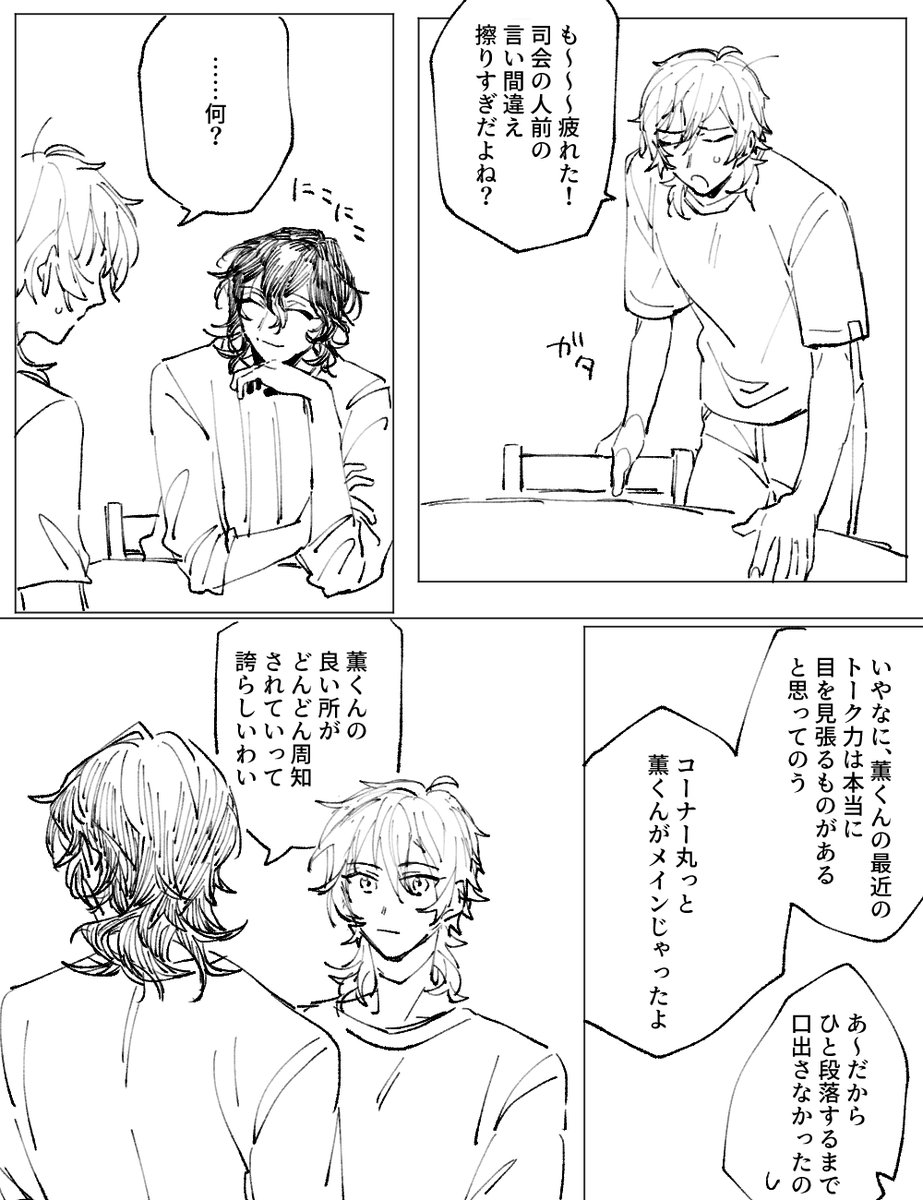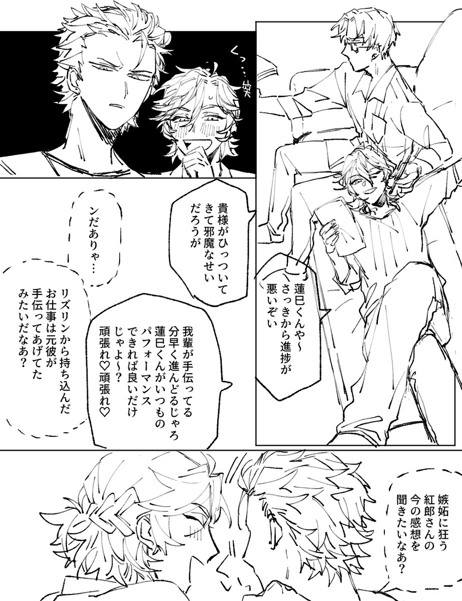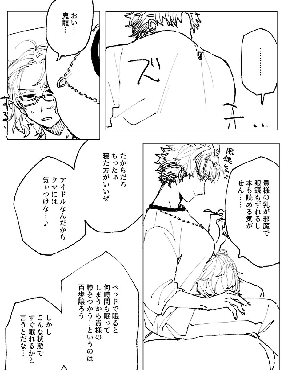#odaibako_fuji4ta10 odaibako.net/detail/request… お題ありがとうございました。このあと部屋に帰ってきた瀬名さんか斎宮さんか真緒に「何やってんだ(何やってんだ)」って怒られるまでがセット。斑紅+レオです。