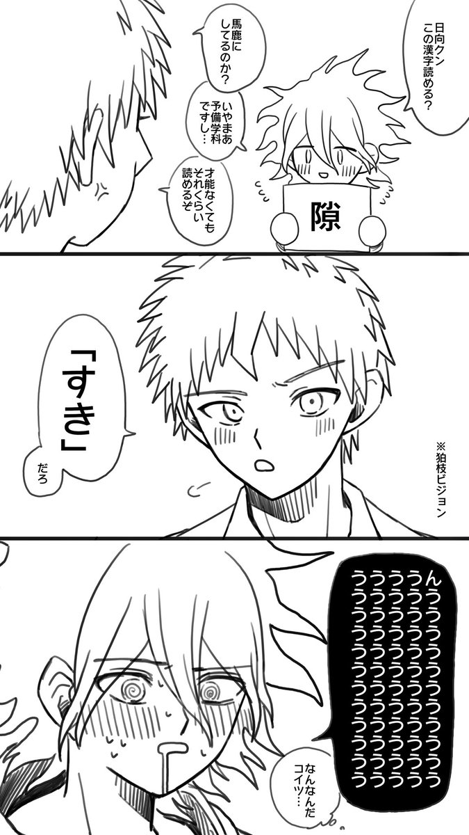 30 179 「キスするから目閉じて」って言っておいて何もせずに相手をからかうやつやろうとしたけど恋人の圧倒的に強い顔面を目の当たりにしてそれどころじゃない狛日の落書きです(長) 22/05/17 21:54