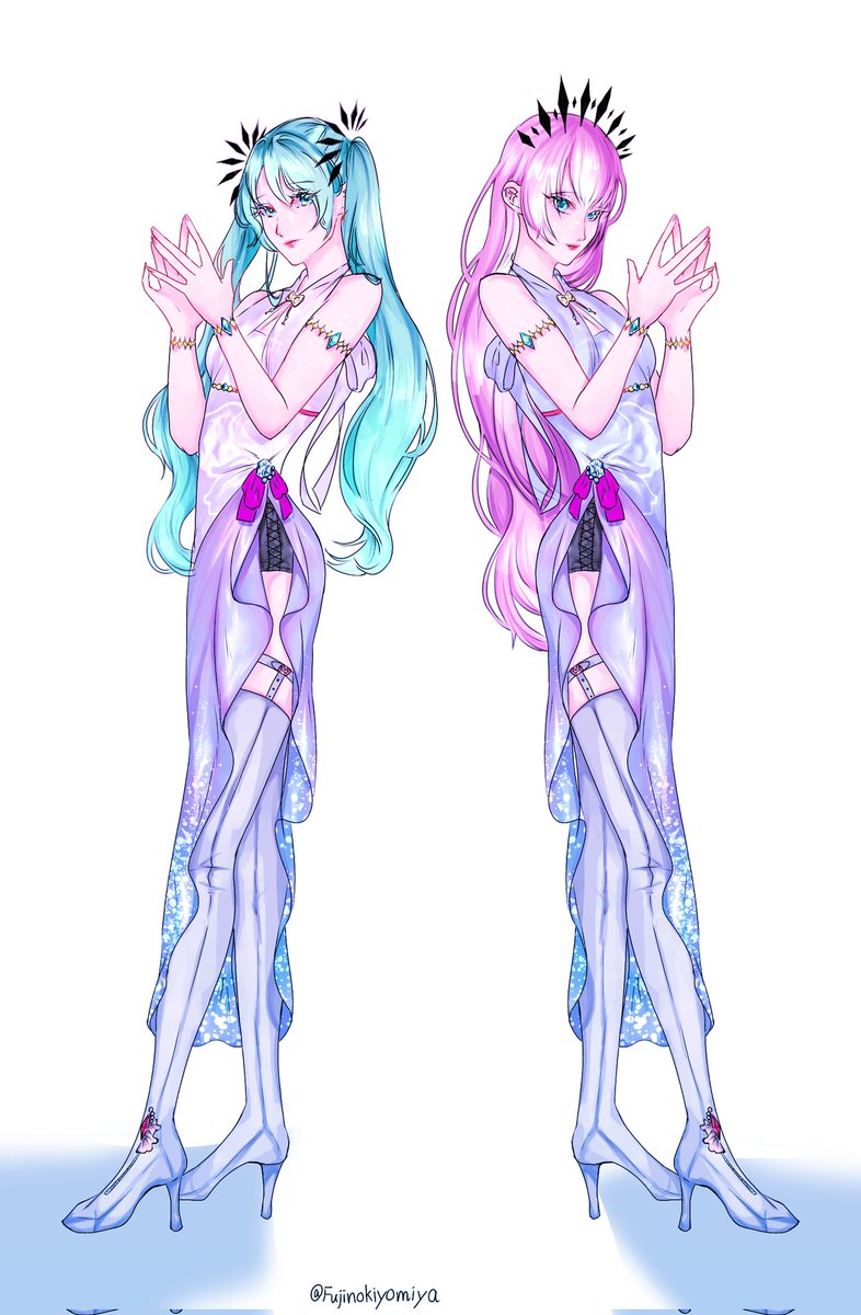 初音ミク&巡音ルカ #イラスト #イラスト好きな人とつながりたい #絵描きさんフォロバ100 #初音ミク #巡音ルカ #ボーカロイド #VOCALOID