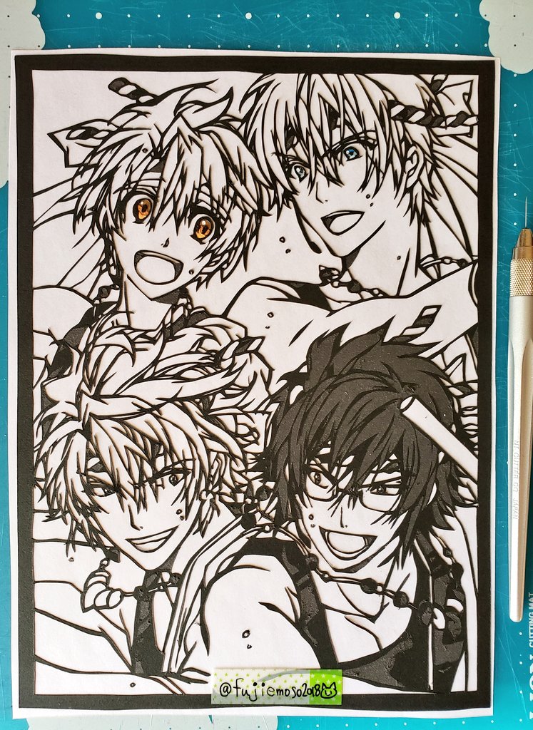 完成した✨ これで最後。 タグはまたもやフォロワーさんに協力してもらったよ✨ 今度まとめて4枚載せようかな🎵 #切り絵 #男子タルモノ #二階堂大和 #和泉三月 #六弥ナギ #八乙女楽