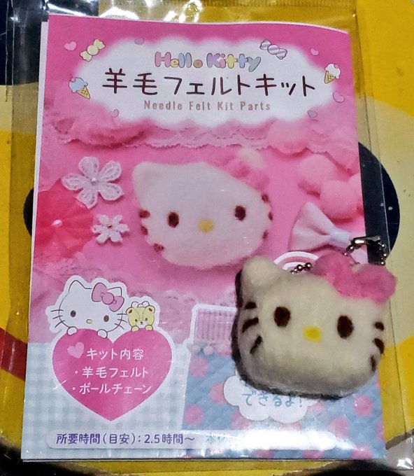 長女にもっと作りたいと言われたのでDAISOで今度はキティ先輩を買ってきた。すぐに始めてさっと完成させてるし…😅 なかなかだなうちの娘←親バカww #羊毛フェルト