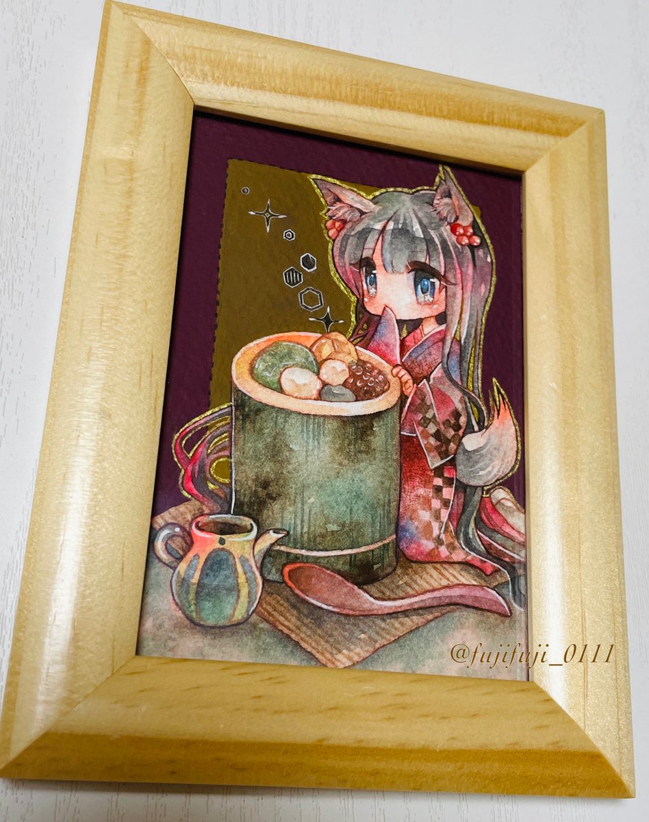 9 64 💚🍵抹茶あんみつ🍵💚 #獣耳カフェの甘い誘惑 #透明水彩 #アクリルガッシュ #アナログ絵 22/11/14 14:58