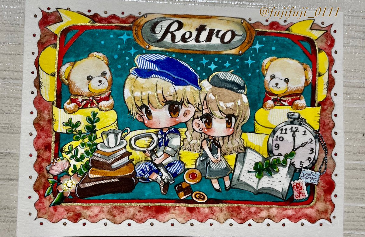 2 11 ○ノンフレーム○ 👘和装ロリータ 〜レトロ風〜🏵️ 🐻レトロな空間🔑 #あの日あの時待ち合わせ展 #arteventcocoon #透明水彩 #アクリルガッシュ #アナログ絵 23/06/28 08:40