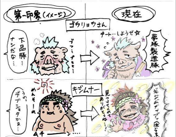 #放サモ5周年なので印象に残った思い出を振り返る ※過去絵再掲 ハマり初めの2018年春の過去絵ですが、まさか2021年冬の今も同じようなことを繰り返してるとは当時の自分も思いませんでした ジェノサイダーズとか…ウォーモンガーズ(特にダイコクさん)とか…⁝第一印象とのギャップ…( ;ᾥ; )⁝✨