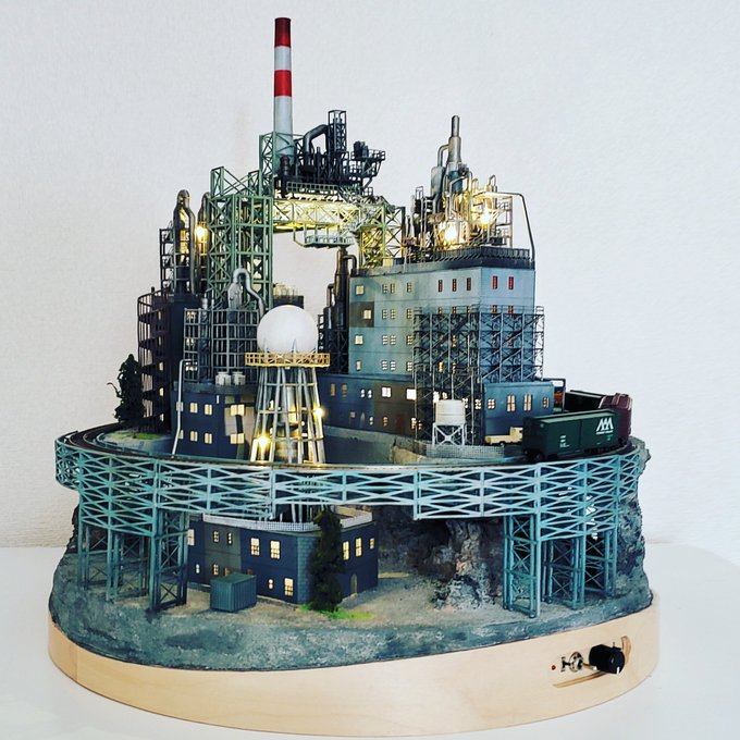 #再掲したらフォロワーが増えるらしい 電車が走る工場ジオラマです🏭