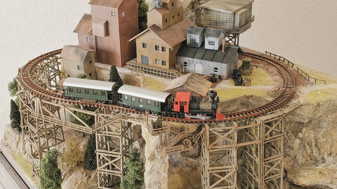 #お盆休みはフォロワーさんが増えるらしい ジオラマ作ってます 写真はウェスタンなミニレイアウト