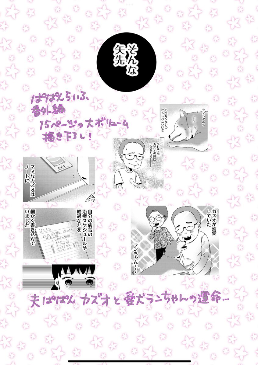 ぱぱんらいふ〜番外編〜(描き下ろし) 介助が必要な老犬と、病気が見つかった飼い主。 ぱぱんが下した決断は……? ebookjapan ebookjapan.yahoo.co.jp/books/718049/ Renta! renta.papy.co.jp/renta/sc/frm/i… Kindle amzn.to/3eVXaMs honto honto.jp/ebook/pd_31935… #漫画が読めるハッシュタグ