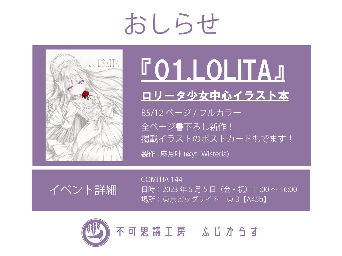 🌹『01.LOLITA』 🌹フルカラーイラスト本 🌹白いかわいいロリータちゃんが目印!🌹 🌹全ページに渡って繊細で細やかな少女が描かれているイラスト本、ぜひ実物をご覧ください✨ 🌹ポストカードの続報もお楽しみに! (製作:@yf_Wisteria) #コミティア144 #COMITIA144