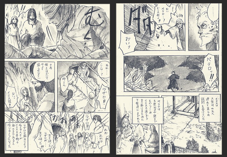 60 186 大掃除中、学生時代の美術キリスト教図像学の課題で100P の聖書の漫画を描いたものが出て来た。提出日がギリギリになって危うく単位を落としそうになったのは内緒の話…。 18/12/23 17:55