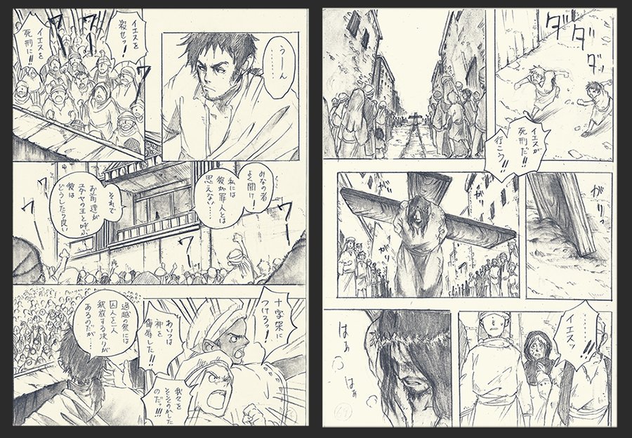 大掃除中、学生時代の美術キリスト教図像学の課題で100P の聖書の漫画を描いたものが出て来た。提出日がギリギリになって危うく単位を落としそうになったのは内緒の話…。