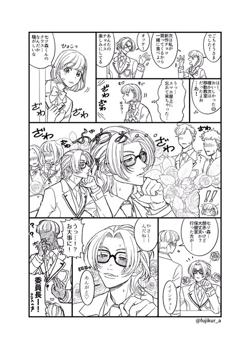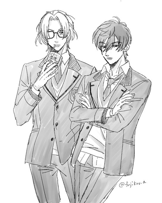 走ってきた人はセーフ!小森くん、クリスくんお誕生日おめでとうございます!猫の日もプラスして描いてみました。 #クリストファー・ウェザーフィールド生誕祭2022 #クリストファー・ウェザーフィールド誕生祭2022 #古森拓生誕祭2022