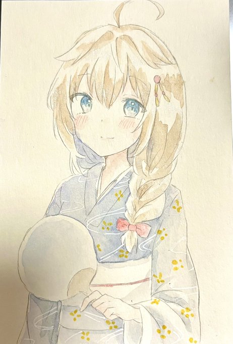 10 29 1日1絵28枚目 花騎士、イフェイオン(創作浴衣) 色味調整したら色飛ぶし調整しなかったら見にくいのでダメです… 23/07/29 01:57