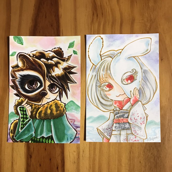 8日(土)から鎌倉MONA様で開催される『おとぎ話展』に参加させて頂きます🌟 沢山のおとぎ話の世界が観れるのを楽しみにしております😊 因み藤見は【カチカチ山】バージョンのたぬ吉&うさ美です⛰ 発送した後に、たぬきの着物の色を変えれば良かったと猛省しました😭 #イラスト twitter.com/kamakuramona…