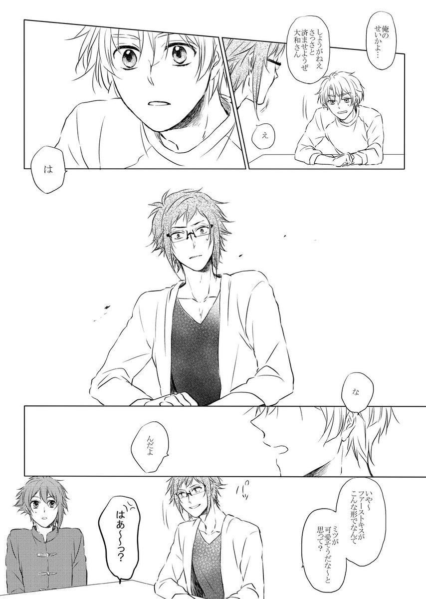 【11/24トプステ やまみつ新刊】きちんとしたサンプルがギリギリになりそうなので取り急ぎ本文の一部だけ…!アイナナ寮での王様ゲームをきっかけにやまみつがなんやかんやするシリアス風味なお話です。