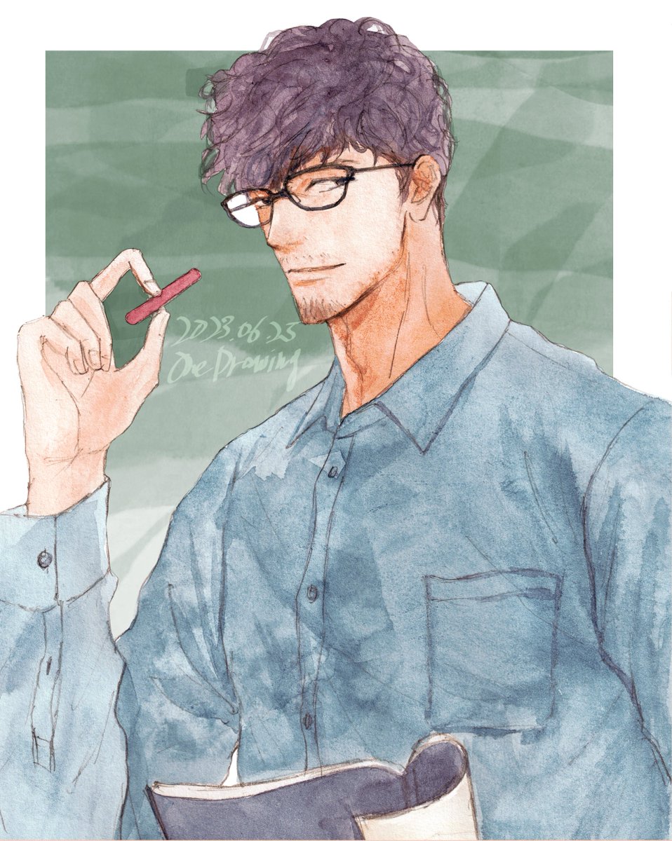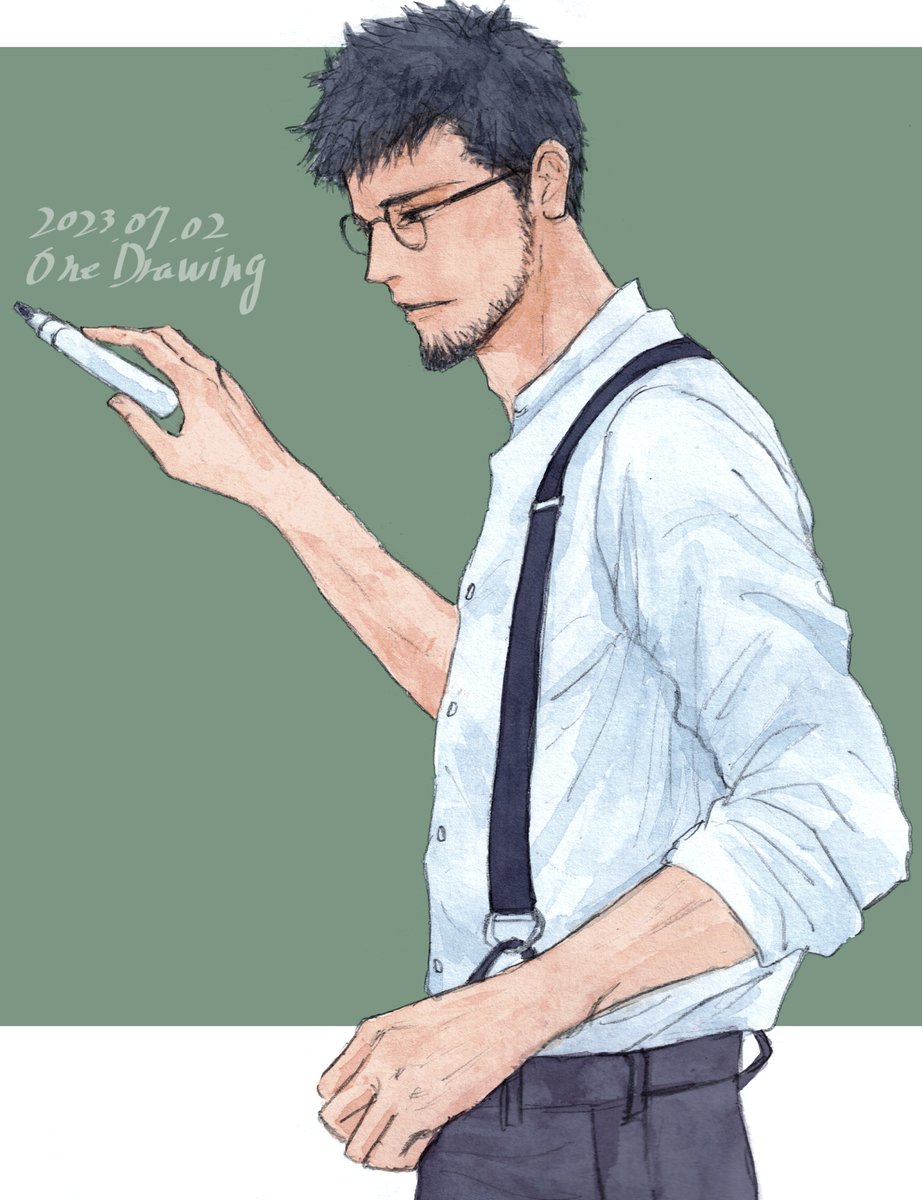 #ヒゲ版深夜の真剣お絵描き60分一本勝負 ■髭ワンドロ企画 ・「ヒゲ×学校の先生」まとめ フライング失礼します!毎回楽しいお題ありがとうございます。先生という事で眼鏡もプラスで参加させていただきました〜