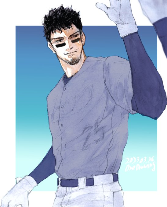 #ヒゲ版深夜の真剣お絵描き60分一本勝負 お題【野球選手/baseball player】【アイブラック/eye black】 フライング失礼します!野球選手を描く事があろうとは思わなかったけど結構お髭さんいらっしゃいましたね