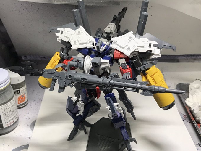 HGデイジーオーガあらためランブルオーガ完成しました 武装をガトリングとミサイルに変更し、装甲を追加して重装備型をイメージして制作しています。 ツノは一本に変更しました #SYNDUALITY