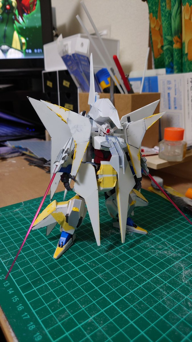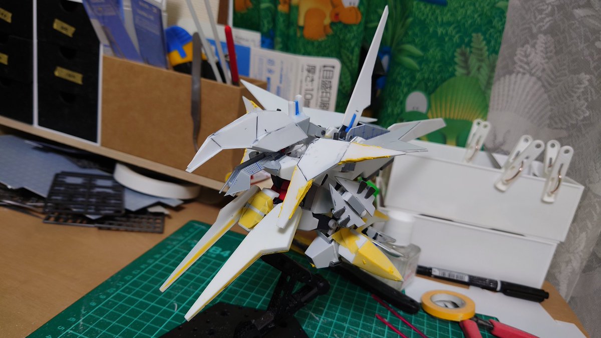 コアガンダムのペーネロペーアーマーの全体像とりあえずできた!あとはライフルと肩の砲身ぐらいか…ここから細かい所詰めてく…ここからが正念場だぞ!なんとでもなるはずだ!#ガンプラはどんな自由な発想で作ってもいいんだ #ガンプラの画像貼るとRTされると聞いて #ガンプラ好きと繋がりたい