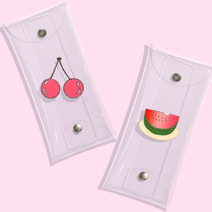 かわいいフルーツのクリアマルチケース🍒🍉できました🎵 色々な使い方ができそうです 縦20㎝幅8.5㎝ マスク入れとかいいかも suzuriで販売中です☆ 宜しくお願いします suzuri.jp/fujino-oekaki #suzuri #クリアケース #マスク入れ #followme #透明ケース #すいか #さくらんぼ #小物 #女子 #イラスト