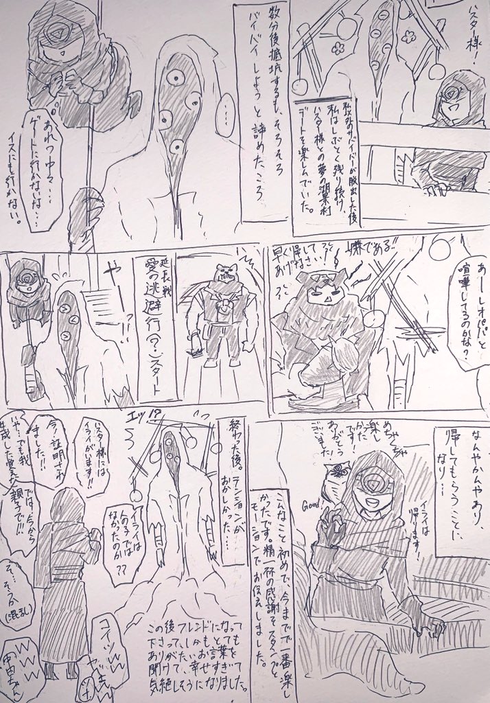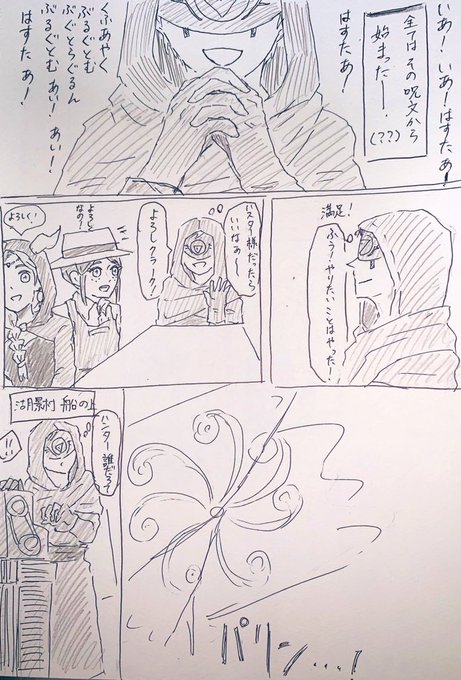 #第五人格イラスト 第五人格実録漫画(もうラクガキ) *字汚いです!すみません! *中の人の心の叫びが混じってます! つい一昨日のダブハンの優鬼様方が素敵すぎて、とても楽しい時間を過ごしました🤗 あんなに楽しかったのは初めてで、今でもとても感謝しています!!
