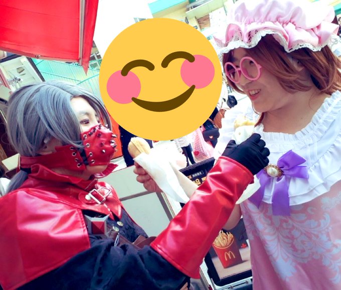 #あるコス ⚠️コスプレ注意⚠️ あるコスお疲れ様でした! これは友人と食べさせ合いっこしてる時の写真。もう一人の友人が撮ってくれました!ありがとうございます!🙇♀️ (イソペで参加しました!⚰)