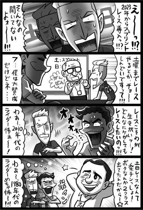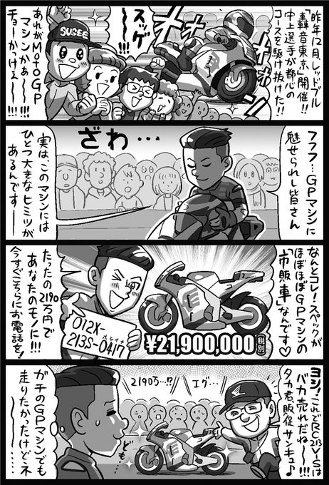 38 458 【定期宣伝】ライディングスポーツというバイク雑誌でふざけた二輪レース4コマを描いています。単行本はamazon等にあります。何とぞよろしくお願い致します!! 21/11/22 12:01