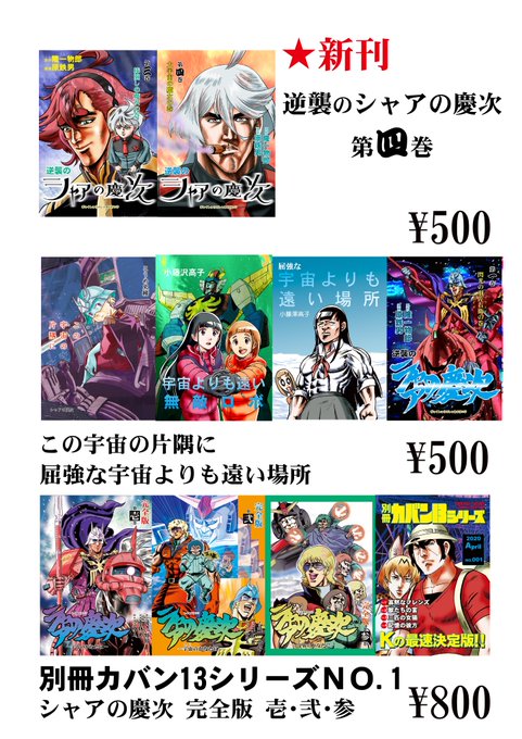 18 27 コミックマーケット101おしながき #ガンダム #花の慶次 #宇宙よりも遠い場所 #艦これ #この世界の片隅に #トライダーG7 #水星の魔女 pixiv.net/artworks/10401… 22/12/29 11:42