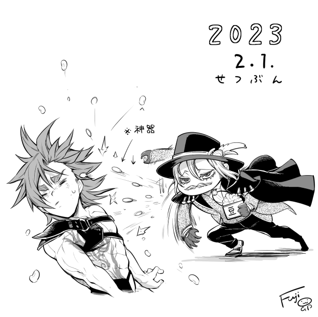 265 1317 【※ネタバレ注意】節分のらくがきジャックとヘラクレス。アニメ2期3話まで、単行本なら7巻まで読んだ人だけ見てね🙇♂️ 23/02/03 14:12