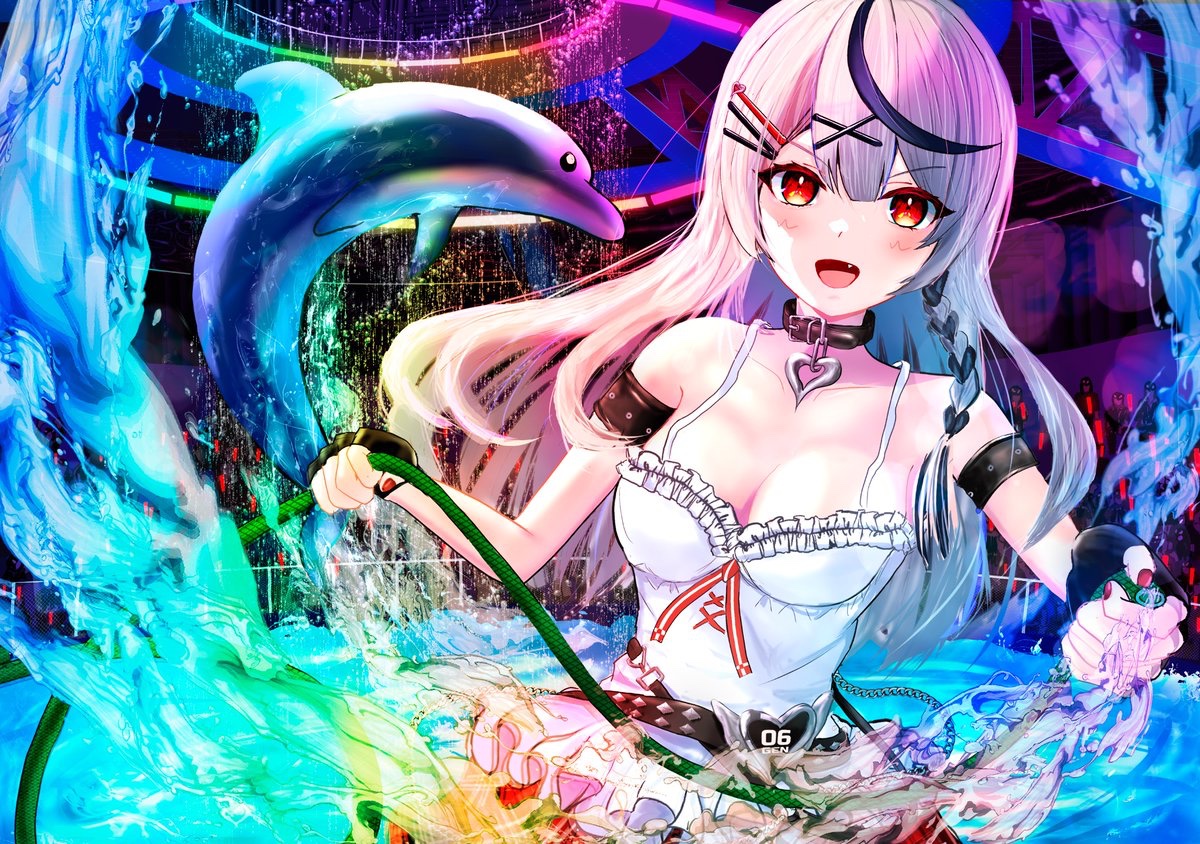 #沙花叉とびしょ濡れ水族館 まさかのホース放水まであると聞いて 「こんな感じか?」ってラフを描きました。 ポンチョ沙花叉さんも描いてみたい… 完成までもう少しお待ちくださいね!🙇♀️ #さかまた飼育日記