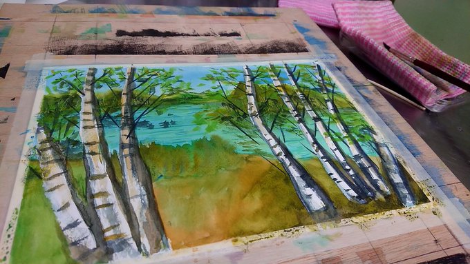 0 1 白樺風景 #ダッセン加藤 #白樺 #水彩画 #呉市 #池 22/05/21 19:50