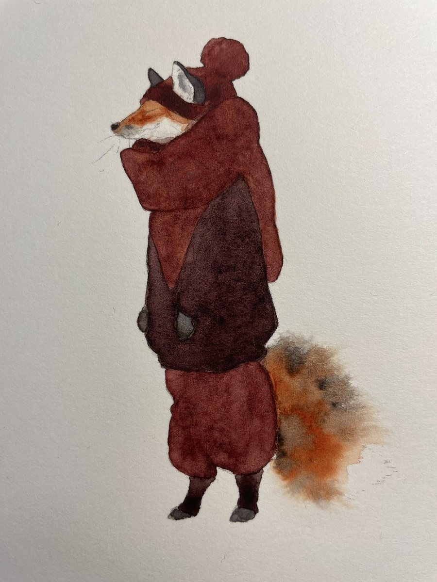 尻尾ふわふわアカギツネ #イラスト #水彩 #冬