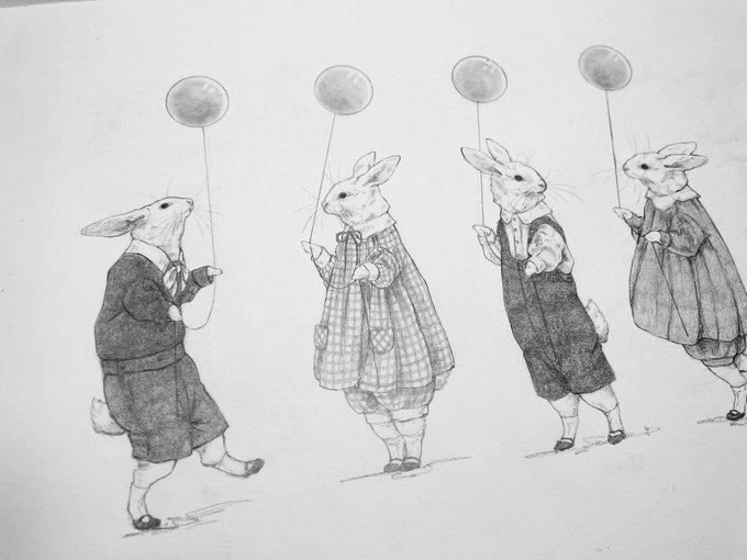 うさぎたちを描きました🎈 #鉛筆 #イラスト